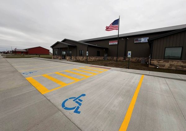 Units are expandable up to 12,000 sq ft per building, with 18' ceilings and 14' overhead doors.